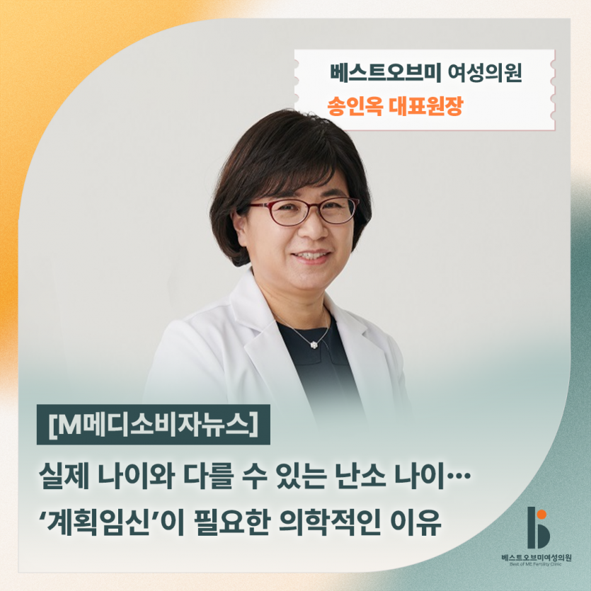 [M메디소비자뉴스] 실제 나이와 다를 수 있는 난소나이, 계획임신이 필요한 이유 - 송인옥 대표원장 > 언론기사